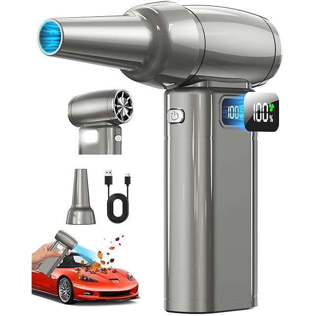 電動エアダスター コードレス 120000RPM高速回転 ブロワー 洗車 ジェットブロアー超強力 充電式 ディスプレイ搭載 小型 軽量 8000mAh大容量バッテリー LEDライト PC掃除 車便利グッズ