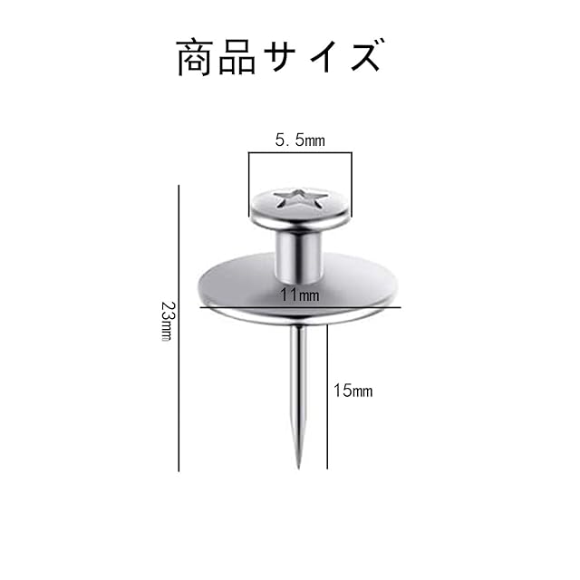 1.精緻でコンパクト:サイズは23 mm*15 mm*5.5 mmで、30枚入りの収納ケースが付属し、保存と携帯に便利で、多種の使用シーンに適している。<br><br><br>2.壁を傷つけない:設計が軽く、取り付け後にわずかな針穴だけが残り、壁への損傷が極めて小さい。分解が簡単で、明らかな痕跡を残さず、壁面を完全に保護する。<br><br><br>3.取り付けが便利:両頭の絵掛ピンの上部が平らに設計されており、最小の力で釘を壁面に素早く打ち込むことができ、穴をあける必要がなく、柔らかい板にも簡単に押して取り付けることができる。<br><br><br>4.多機能用途:写真、絵画、時計、装飾品などをかけるのに適し、鍵、ガジェット、コート、服、帽子、バッグ、傘、タオルなどをかけることにも使用でき、実用性が高い。<br><br><br>5.軽量高級:シルバー亜鉛合金材質、軽量と高級感を兼ね備え、装飾性と機能性を兼ね備え、あなたの家庭環境にシンプルでスタイリッシュな雰囲気を添える