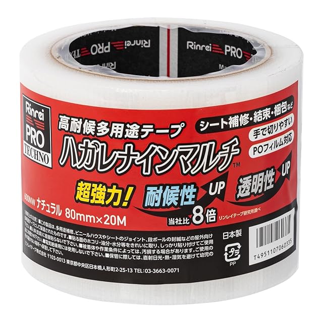 商品名:リンレイテープ 強粘着 高耐候多用途テープ ハガレナインマルチ 80mm×20m ナチュラル #600NW_80mm_NL