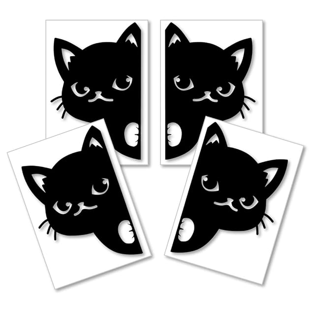 ひょっこりネコ小サイズ4枚セット カッティングステッカー デカール (黒, ねこのみB)