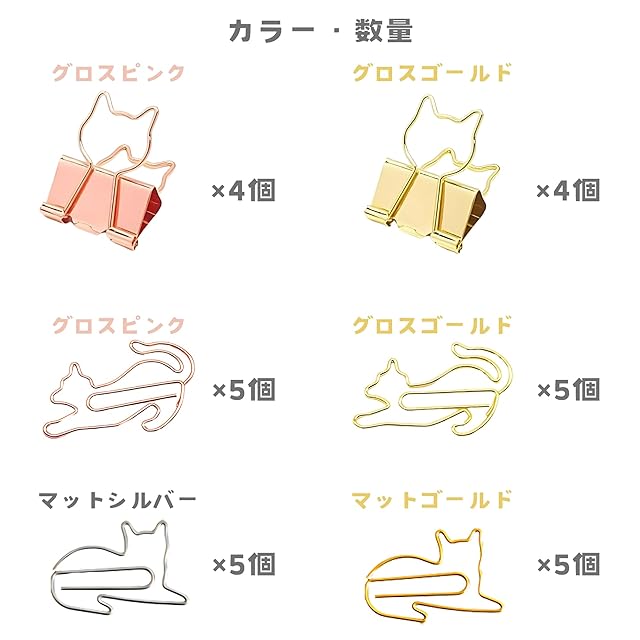 猫型のダブルクリップ 2色×4個 猫型クリップ 2種×2色×5個