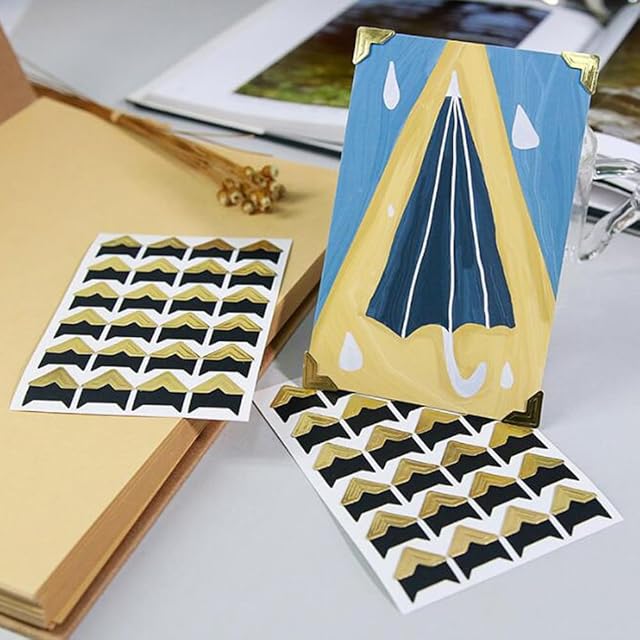 GOODCHI 写真コーナーシール コーナーシール 自己粘着 DIY フォト 手作り アルバム ブック ステッカー 10枚セット ゴールド