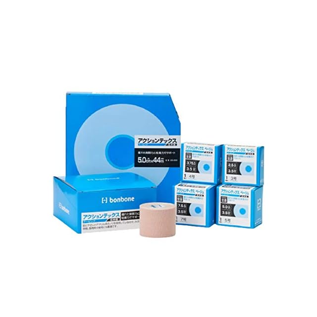 アクションテックスは、これまでのテーピングに比べて生地が厚く、<br>伸縮性を抑えているため、固定力がより強力に<br>なっています。肌にやさしいアクリル系の糊を<br>使用しているので、カブレにくいのも特徴。<br>長時間の使用にもおすすめです。<br><br>製造国:日本