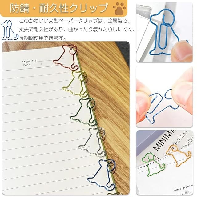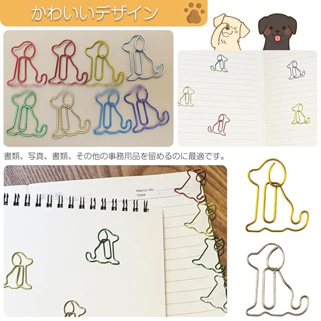 幅広い用途: この犬型ペーパークリップは、オフィス、学校、家庭、パーティーなど様々なシーンに適しています。ペーパークリップとしてだけでなく、ブックマークとしても使用でき、あなたの生活をよりカラフルで面白いものにします。