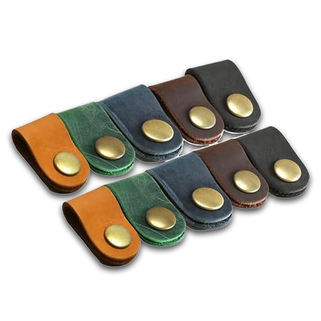 [ 亀登鞄製作所 ] ケーブルクリップ (10個セット) ケーブルバンド 本革 革 ケーブル クリップ コードクリップ まとめる まとめ キャメル、こげ茶、ブラック、ブルー、グリーン 長さ8cm、幅2.3cm