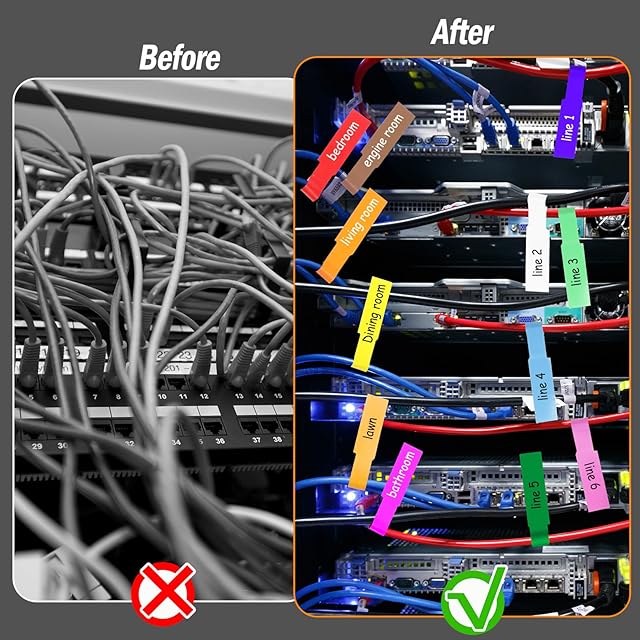 Hianjoo ケーブルラベル コードタグ 配線識別 電源ケーブル lanケーブル ラベル タグ マジックテープ 手書き目印 ケーブルタグ 12色 360枚入