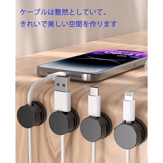 商品名:ケーブルホルダー マグネット式 回転可能 ケーブルクリップ 6個セット 強力粘着 配線収納 デスク 机 壁 車 USB-C ケーブル固定 type-c マウスライン キーボードライン 電源コード ヘッドフォンケーブル などに対応