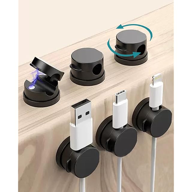 ケーブルホルダー マグネット式 回転可能 ケーブルクリップ 6個セット 強力粘着 配線収納 デスク 机 壁 車 USB-C ケーブル固定 type-c マウスライン キーボードライン 電源コード ヘッドフォンケーブル などに対応