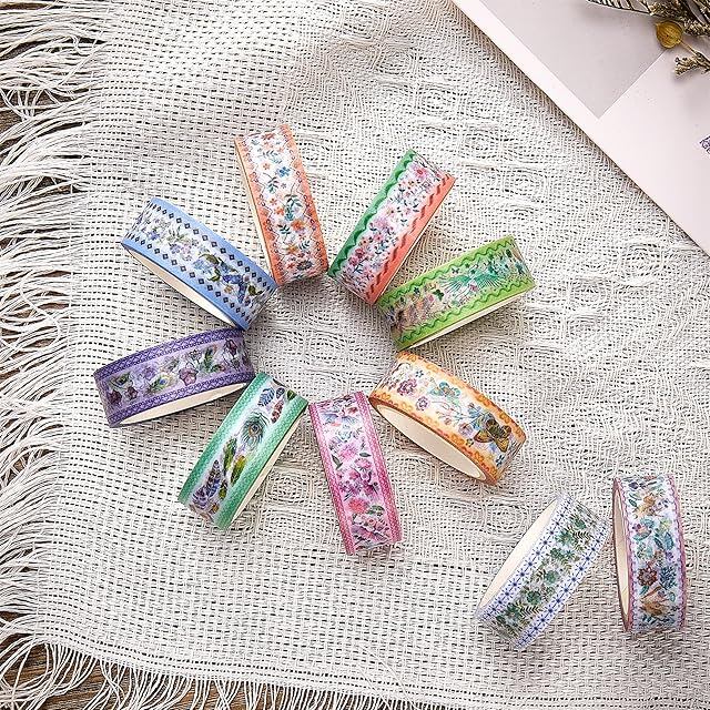 YUBBAEX 10巻 刺繍風 マスキングテープ セット 花柄・自然モチーフ 和紙テープ アート・DIYクラフト・バレットジャーナル用品・プランナー・スクラップブック・カード/ギフトラッピングに