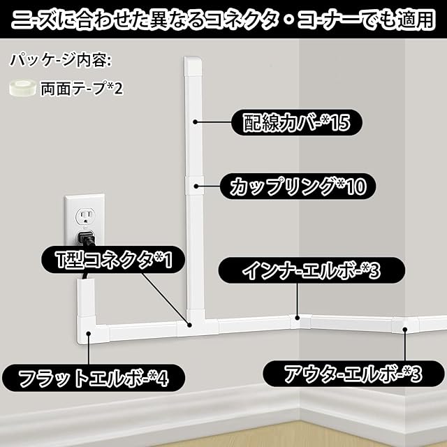 【自由にカット&塗装可能】1本40cmの配線モールは、ハサミやカッターで簡単にカット可能。L字・T字・フラットジョイント付きで、直線・角・カーブにも柔軟に対応。テレビ裏やPCデスク、廊下の角など、複雑なレイアウトにもきれいにフィットします。インテリアに合わせて塗装もできるので、壁紙や家具の色と調和させて美しく仕上げることができます。
