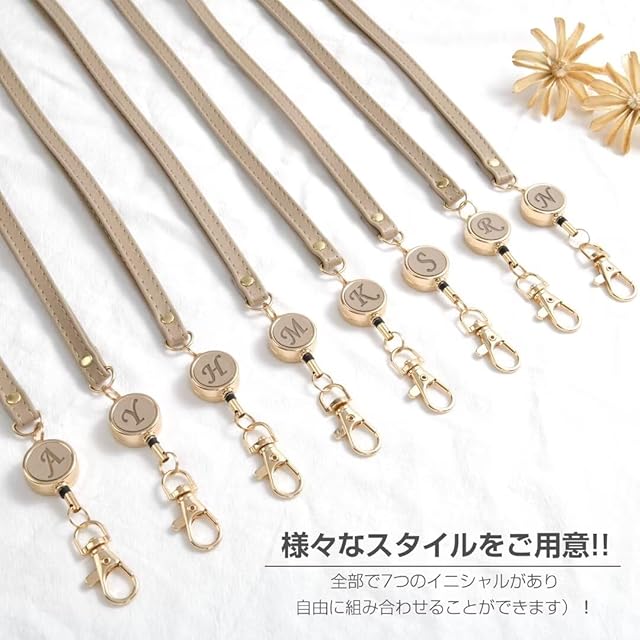 [LanFly] ネックストラップ 首掛け リール付き レディース メンズ パスケースネックストラップ IDカードホルダー 名札用ストラップ 取付用 キーホルダー リールストラップ 36CMまで伸びる PUレザー シンプル オシャレ(イニシャルA)