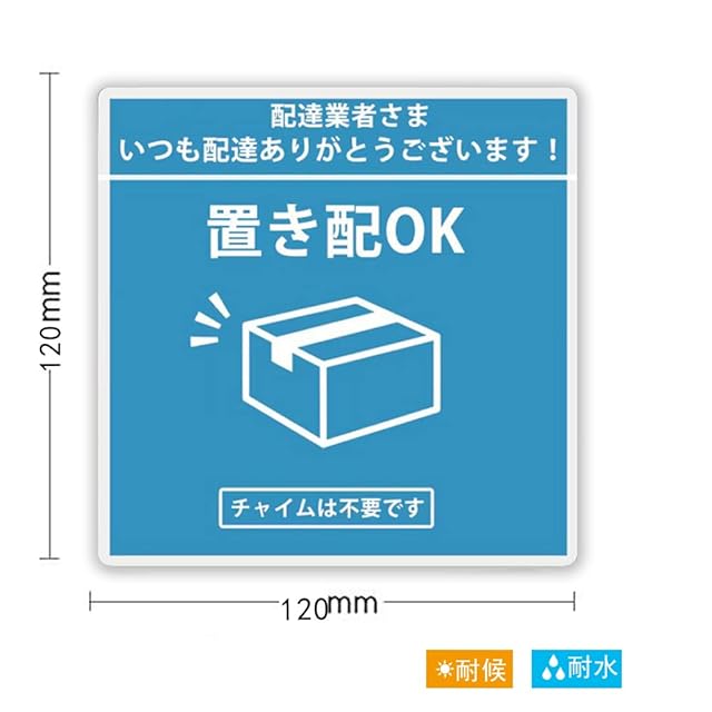 置き配 マグネット 宅配ボックス (120×120mm) 耐候性 耐水 置き配 宅配BOX ステッカー 再配達防止 宅急便 留守 不在 案内 表示 玄関 郵便 ウイルス感染予防 非対面 プレゼント (ブルー 1枚セット)