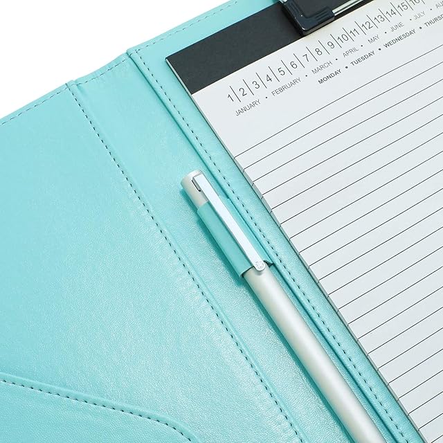 バインダーA4 クリップボードフォルダ 二つ折りPU 会議パッドクリップファイル デスクパッド署名フォルダ A4書類フォルダー 契約書サイン専用 オフィス用品 事務用品 (アクアブルー)