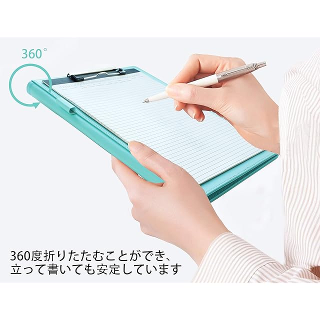 360度折りたたむことができ、立って書いても安定しています。A4サイズ(21*29.7cm)とB5サイズ(18.2*25.7cm)の用紙に適用されます。