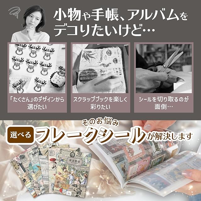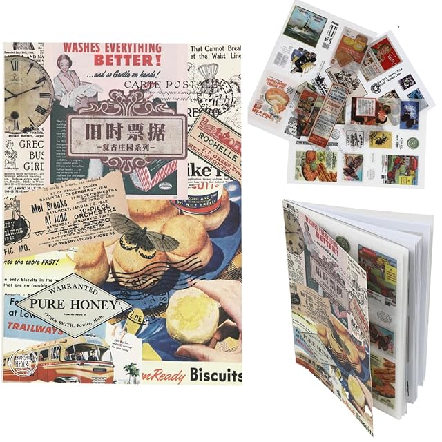 Kansha Heart 20ページ約250種 コラージュ 素材 フレークシール コラージュ素材 シール ステッカー スクラップブッキング マステ素材 シールブック ジャンクジャーナル ビンテージ 切手 透明シール 手帳 アルバム フォトブック (アメリカン/アンティーク)