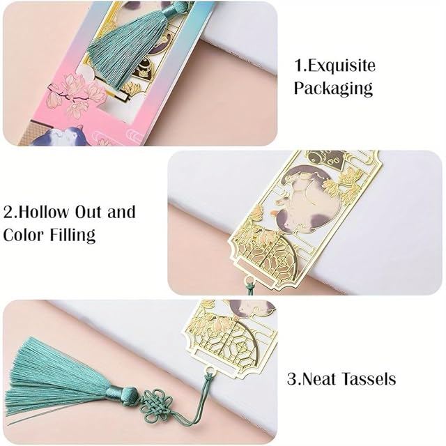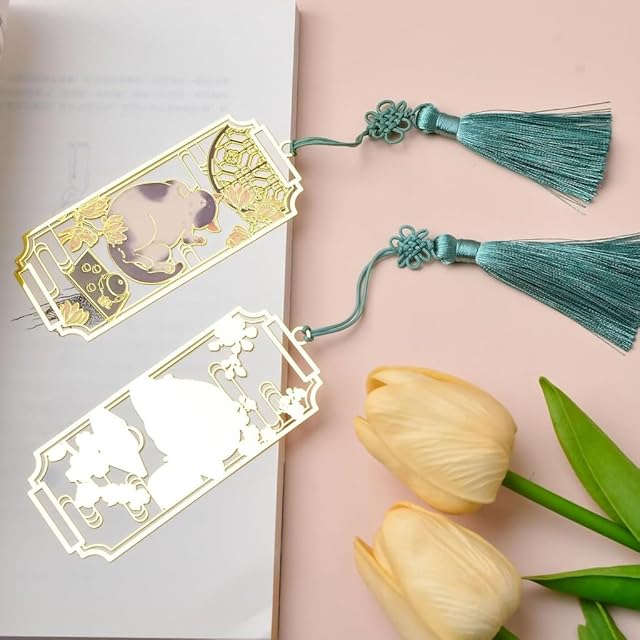 しおり 金属 しおり おしゃれ ブックマーカー 栞 金属 2個 薄い製ホローブックマークタッセル付き猫ブックマーク ノベルティ ロータスサクラ メタルブックマーク 大人・友人・教師・本好きのための手作りセット