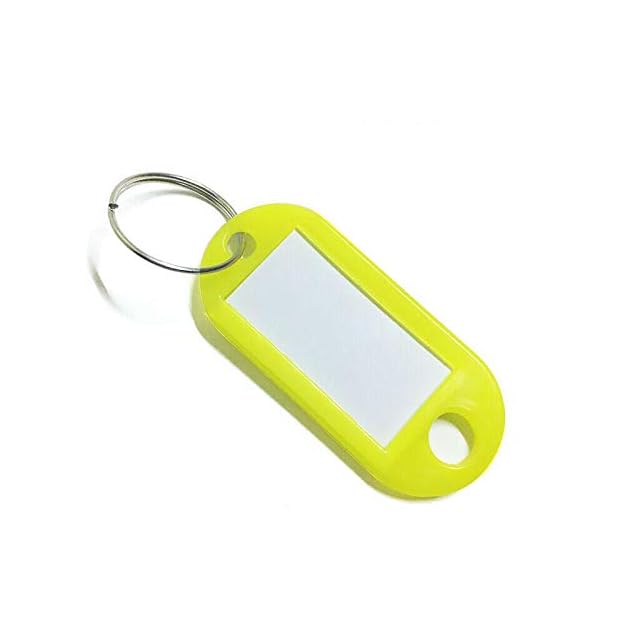 キーラベル、50PCSキーIDタグキーラベルタグプラスチックキータグ、キーフォブとしてのキーリング付きタグ荷物ペット名メモリースティックタグ(黄色)