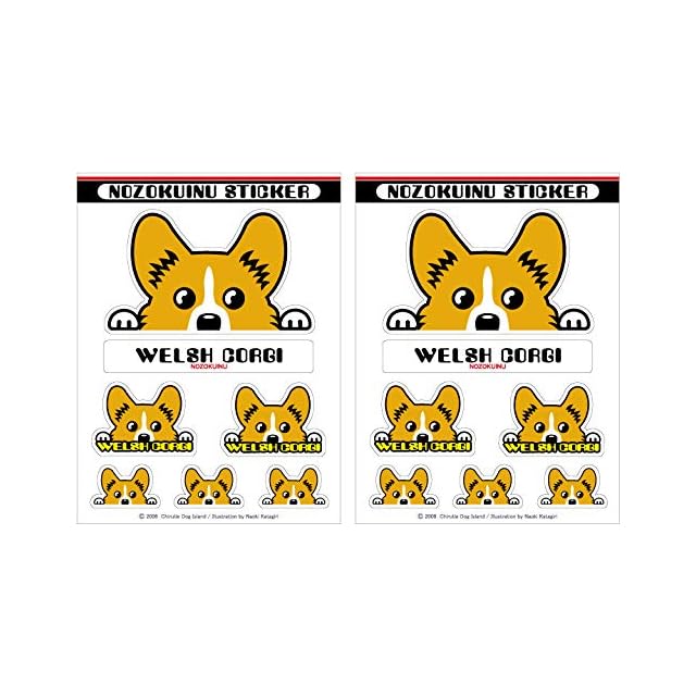 のぞく犬ステッカー [ウェルシュコーギー] 犬 車 ステッカー 屋内/屋外対応 UV耐候性 光沢 強粘着 ウェルシュコーギー 【2セット入り】