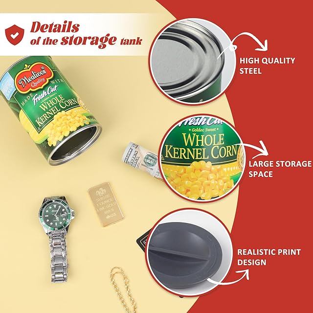 安全な転用金庫:これらの偽缶は、現金、宝石、その他の貴重品を隠すのに最適です。 日常的なアイテムの外観を模倣しているため、検出が困難です。