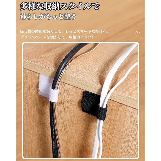 【調整可能&繰り返し使える魔術テープ】配線止め部分には耐久性に優れた高品質ナイロン素材とマジックテープや結束バンドを採用。ケーブルの本数や太さに合わせてサイズを自由に調節でき、太い電源コードも細い充電ケーブルも一括収納可能。繰り返し着脱できるので、何度でも使い回しできて経済的。複数のケーブルもまとめて片手で素早く取り外し・取り付け可能です。