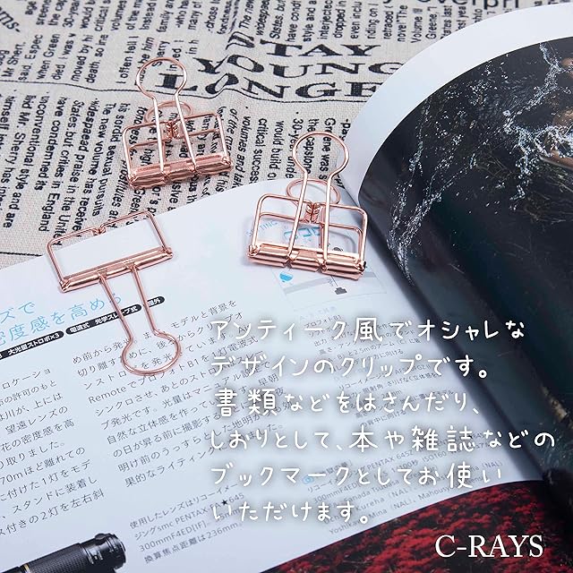 C-RAYS ダブルクリップ Wクリップ アンティーク クリップ ペーパークリップ 金属製 書類 整理 事務用品 32mm (ピンクゴールド 15個入り)