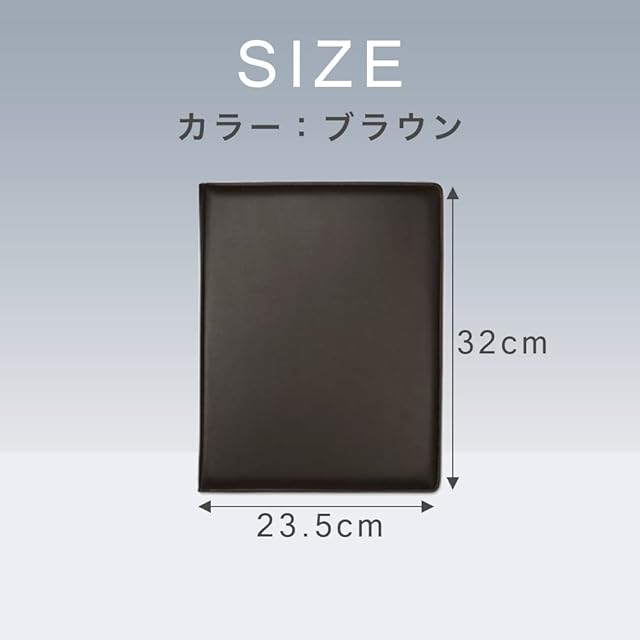 【商品詳細】本体1個、サイズ:縦32cm,横23.5cm、対応用紙サイズ:A4、カラー:ブラウン