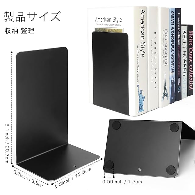 良い耐久性:厚いスチール製で、丈夫で辞書みたいな分厚い本がいっぱい入れても変形しにくく耐久性が良いです。底面に滑り止めのゴムが四つ付いていて倒れにくいだけではなく、摩擦を減らして机に置いたとき音が小さくなります。音に驚かされるのを心配しないでください。