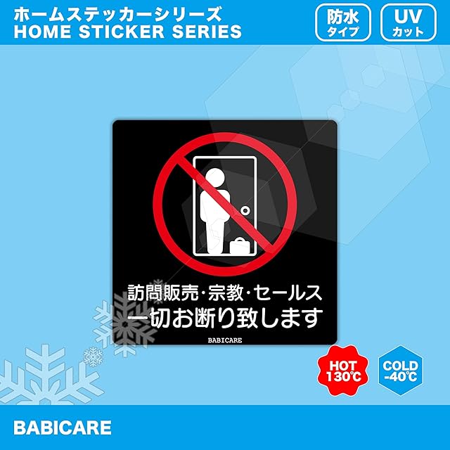 【BABICARE】訪問販売 宗教 セールス 一切お断り ステッカー/シール/プレート 耐熱/耐水/耐光/UVカット PET製 (ブラック, M(100x100mm))