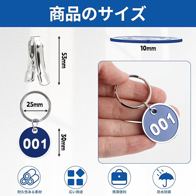 【実用】番号札などを付ければクロークなど荷物のお預かりにも便利にお使いいただけます。金属キーリングも付いていて、いろんな場合に使えます。簡単にお探しの番号を見分けられます、とても便利です。