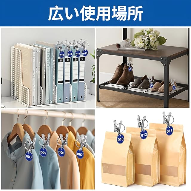 【多用途】事務用としてもOK、温泉、ジム、アウトドア、イベント、パーティに大活躍します。さらに使用用途が広がります。素早くて簡単に商品を識別できます、作業効率があがります。小物の保管や商品の整理札や荷物のお預かりの番号札としてもお使いいただけます。