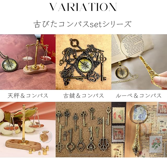 【セット内容】以下の3種より選択可:①ルーペ&コンパス ②天秤&コンパス ③鍵&コンパス