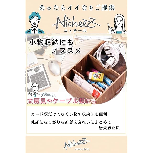 【小物の収納にもオススメ】カード類だけでなく、小物の収納にも便利です。仕切りの間隔を調整することで文房具・ケーブル類・PCの周辺機器・アクセサリー・化粧品のような、乱雑になりがりな雑貨をきれいにまとめておくことができ紛失防止にも◎