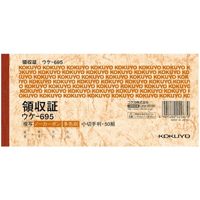コクヨ(KOKUYO) 領収証 横書き ノンカーボン複写 小切手判横 三色刷り 50組 ウケ-695N