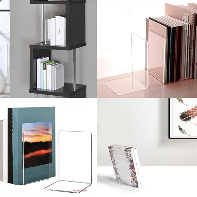 wowjimi プラスチックアクリルブックエンド L字型 整理 図書館 寝室 学校用品 文房具ギフト クリア本立て 倒れない デスク (2個セット)