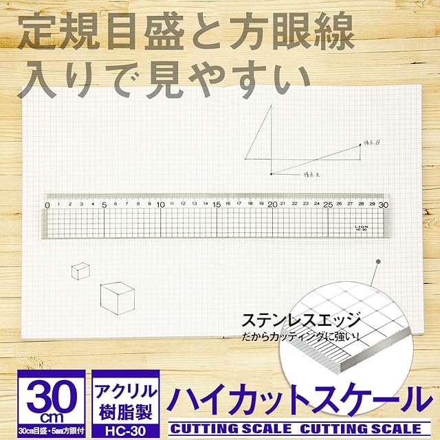 ライオン事務器 定規 ハイカットスケール 30cm HC-30 アクリル