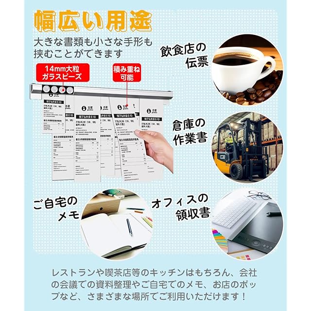 【幅広い用途】オーダークリッパー(伝票ホルダー)は小さくてスペースを取らず、耐久性があり、美しいです。レストランや喫茶店等のキッチンはもちろん、会社の会議での資料整理や事務所など職場の雰囲気に合わせます。それ以外、ご自宅でのメモ、お店のポップなど、さまざまな場所でご利用いただけます!