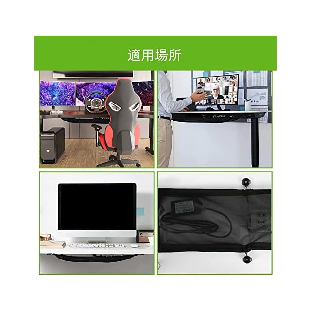 【ケーブル隠し用の面ファスナーデザイン】:この収納ネットにはケーブル隠し用の面ファスナーがデザインされ、デスクの下のケーブルを隠して収納できます。ケーブルが床に散らすことを防ぎ、家をきれいに整理整頓します。また、ワイヤーにつまずいたり、ペットに噛まれたりするという安全上の問題を解決します!