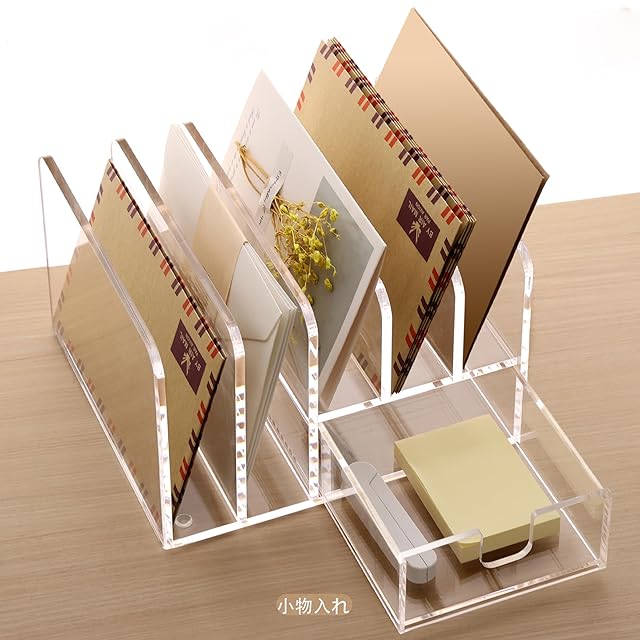 【高透明アクリル製オフィスデスク収納】アクリル樹脂(厚さ5mm)採用で99%の透明度を実現。黄変・ひび割れに強く、耐荷重5kgまでの耐久性を両立した書類立ての決定版。オフィスデスクの書類整理からコスメ収納まで、中身の可視性を保ちながら安定感抜群です