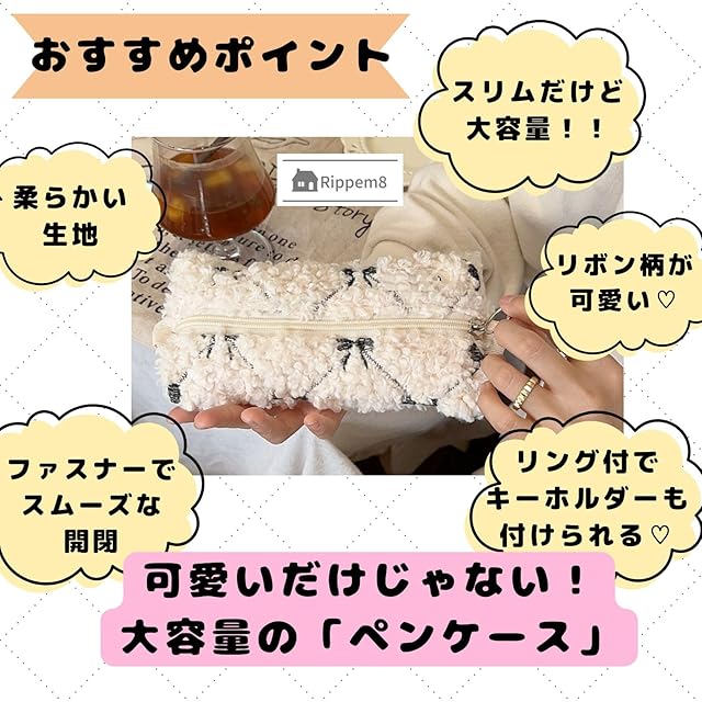 【商品特徴】リボン柄が可愛い、もこもこした大容量の「ペンケース」♡