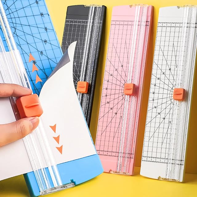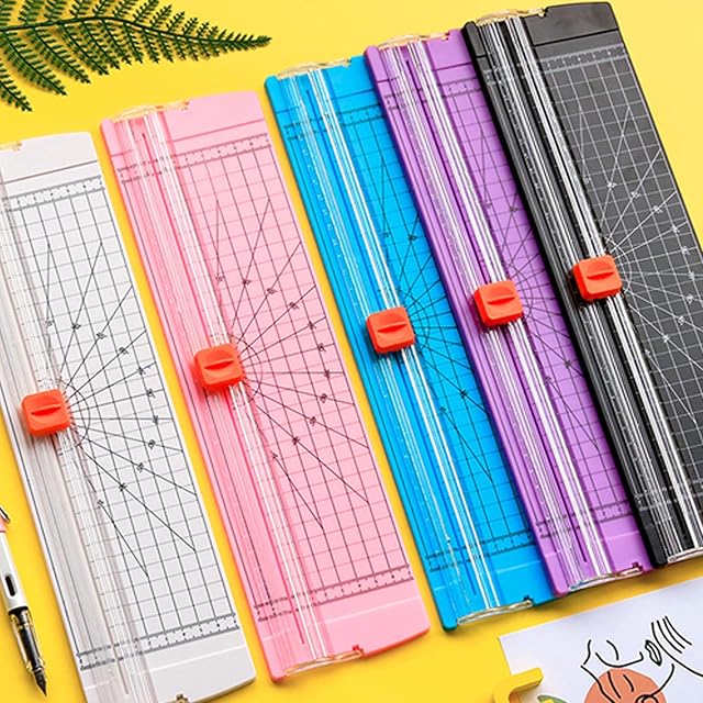 【便利なカッター】押し時にスライドで直線カットでき、裁断時に用紙がズレにくい、紙綺麗に裁断になれます。底が滑りにくい、安定して切れる、滑りにくい、使いやすいペーパーカッター、定規で切るペーパーカッターを使っても誰でも簡単に切れます。