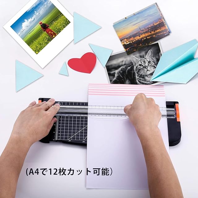✅【幅広い用途】再生ABSとスチール製。刃は硬く非常に鋭利で、写真、カード、デカール、厚紙、ラベル、PVCフィルムなどのカット相性も問題ありません。紙往復裁断方式 約12枚。A4サイズ対応。
