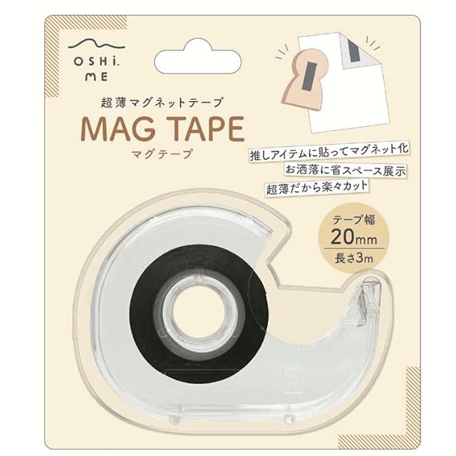 カミオジャパン MAG TAPE マグテープ カッターケース付きタイプ クリアケース 20mm幅 マグネットテープ どこでもマグネット カッター付き 264595