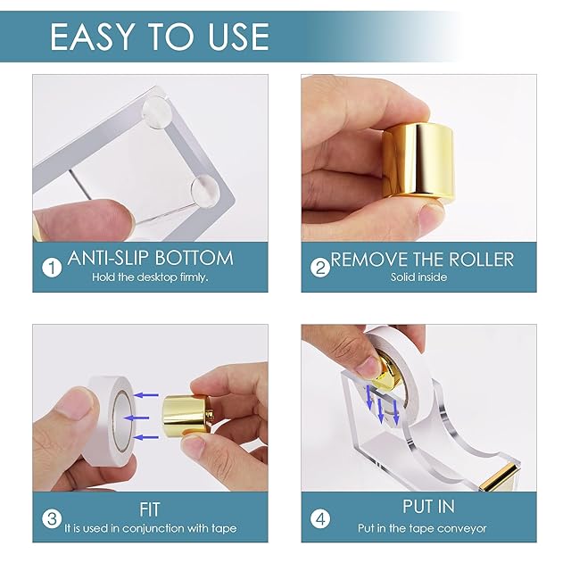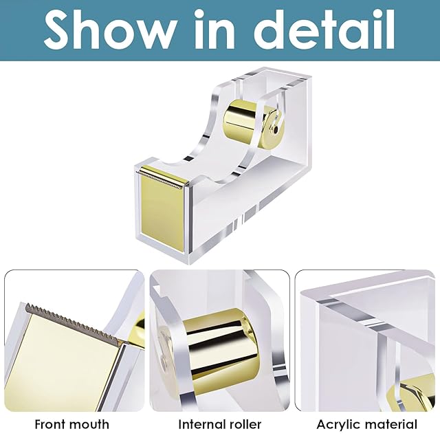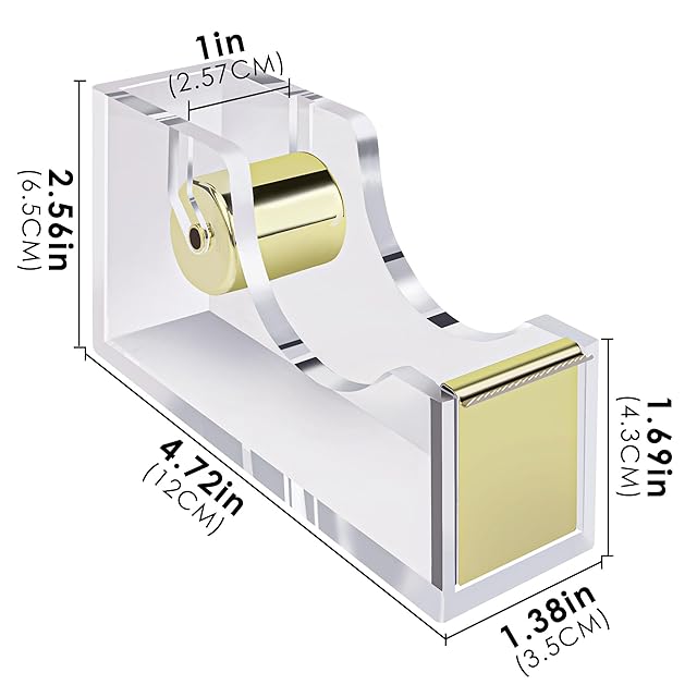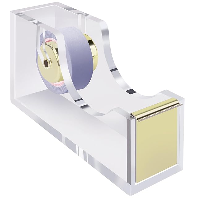 TOCCOOL ゴールドアクリルテープディスペンサー - ノンスリップデスクトップオーガナイザー 1インチのテープコア用 文房具オーガナイザー テープカッター 透明でモダンなデザイン 自宅やオフィス用 (テープは含まれていません)