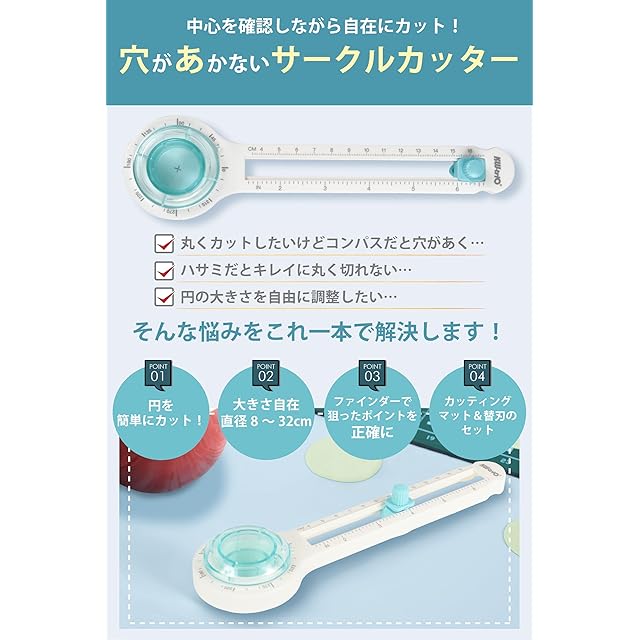 ✅ 直径 8cmの小さな円から32cmの大きな円までカットすることが可能です。簡単な操作で円の大きさを無段階、自在に調整できます。スケールは、センチメートル(cm)とインチ(inch)のダブル表記です。アイデアを制限せずに表現できます。