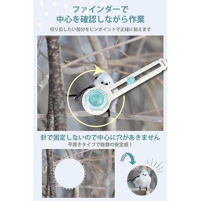 ✅ 中心に穴をあけずに円をカット。針を使用しない設計なので、カットした素材の中心に穴が開く心配はありません。大切な作品や写真を綺麗に飾り付けたり、装飾を施したりする際に安心してご利用いただけます。