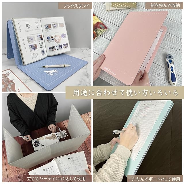 折りたためるので、収納、持ち運びに便利 : 広げると96cm、半分にたたむとA3,更にたたむとA4サイズになるので場所を取らず便利です。たたみ方によってファイルやブックスタンド、パテーションとしても使用できます