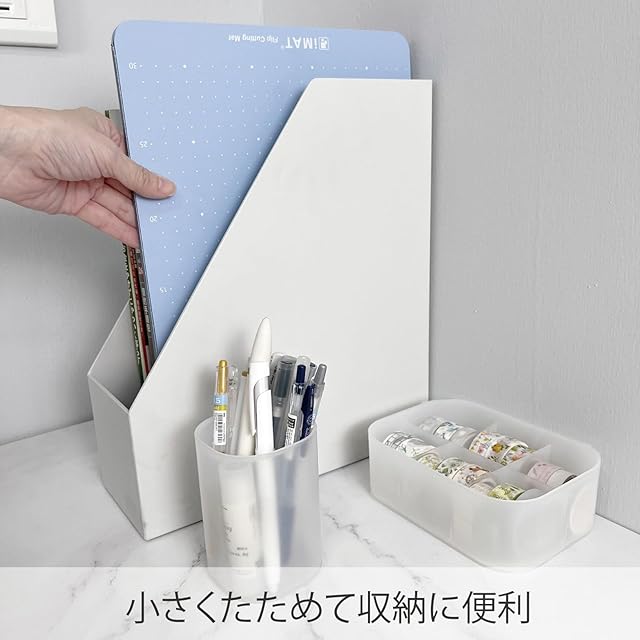 【折りたためるので、収納、持ち運びに便利 】 広げると96cm、半分にたたむとA3,更にたたむとA4サイズになるので場所を取らず便利です。たたみ方によってファイルやブックスタンド、パテーションとしても使用できます。