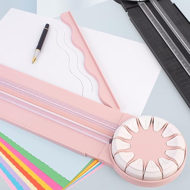 ペーパーカッター 裁断機 小型 12 イン 1 ペーパートリマー スケール定規が付属 360 度回転可能な手動波線ペーパー カッター A4 A5 A3対応 軽量ミニ裁断機 直線切断 角度切断 スライドカッター 多機能プラスチック ペーパー カッター ポータブル 業務用 家庭用 文房具 オフィス用品 事務用品