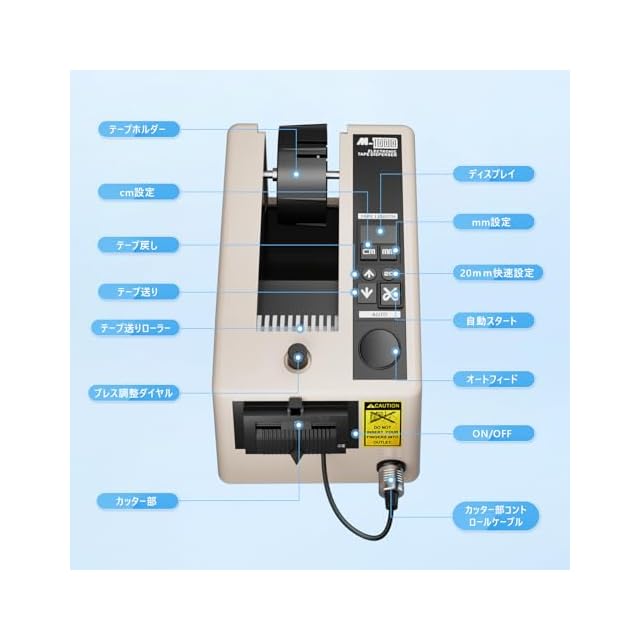 商品名:テープカッター 日本コンセント 電動テープカッター 作業効率UP 自動テープディスペンサー M-1000テープ切断機 業務用(7-50mmテープ適用)工場用 物流用 梱包テープ オフィス用