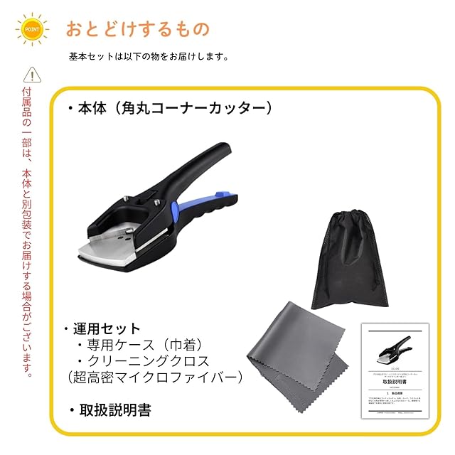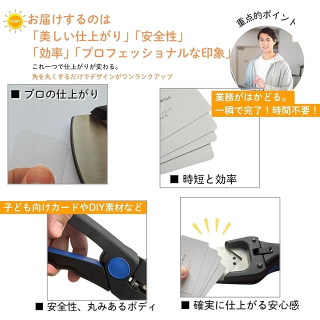 用途:板状の角を丸くカットする(カード、名刺、ラミネート加工品、写真など)